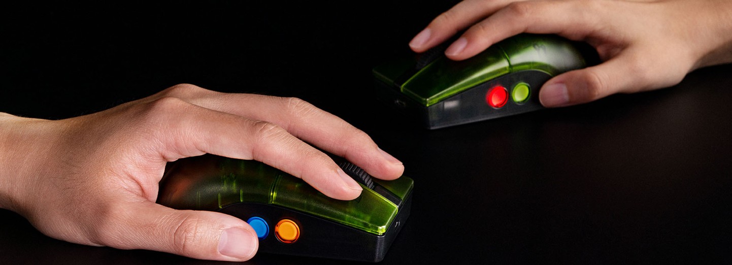 It features four programmable buttons in the colours of the A, B, X and Y buttons. The mouse is battery-powered and comes with a colour-coordinated charging station.