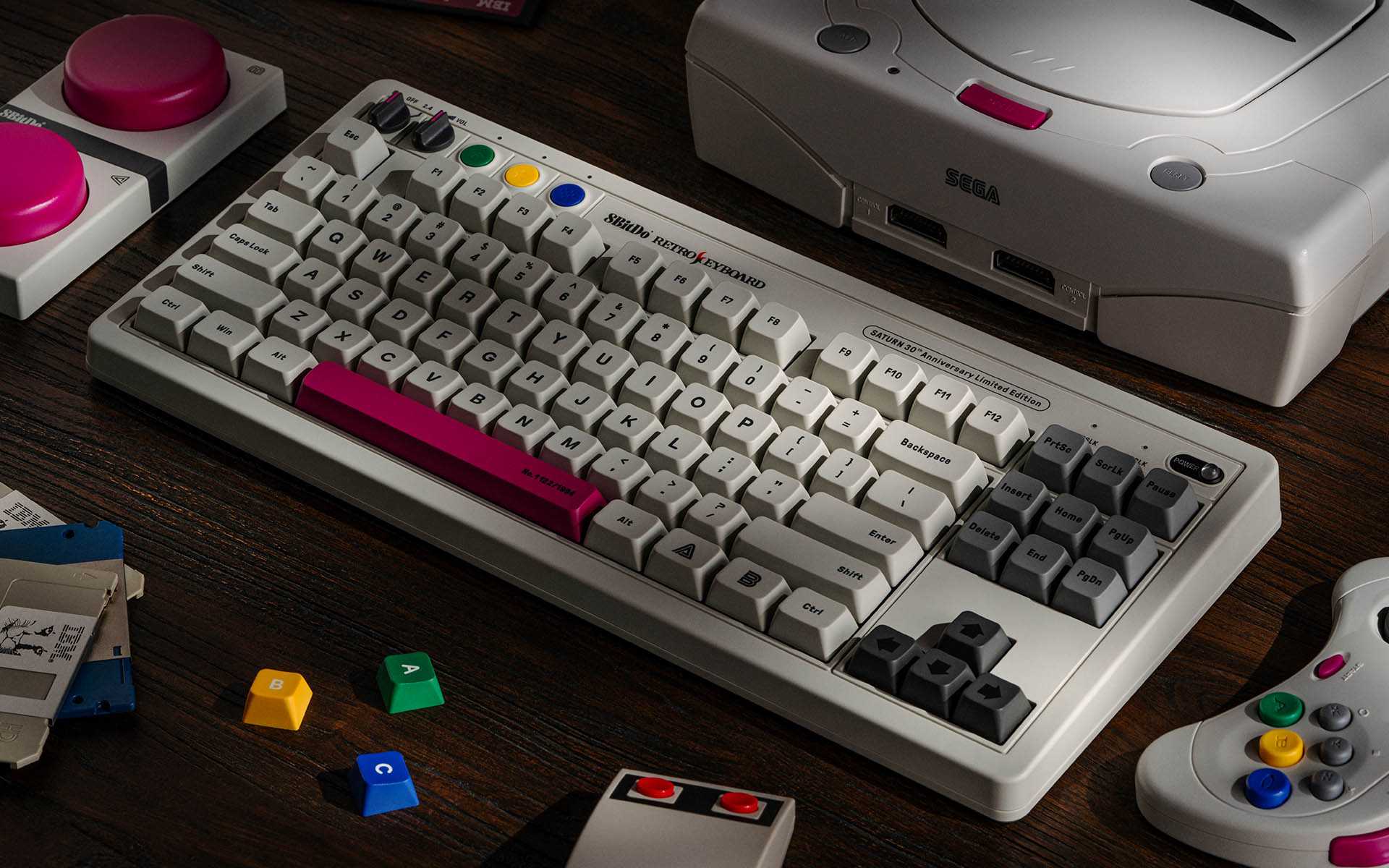 La principale nouveauté réside dans l'esthétique du clavier via une mise à jour des couleurs et l’ajout de six touches personnalisées en hommage à la manette de la Sega Saturn. Ces touches reprennent les célèbres lettres ABCXYZ et leurs teintes distinctives, et peuvent être ajoutées ou non selon vos préférences.